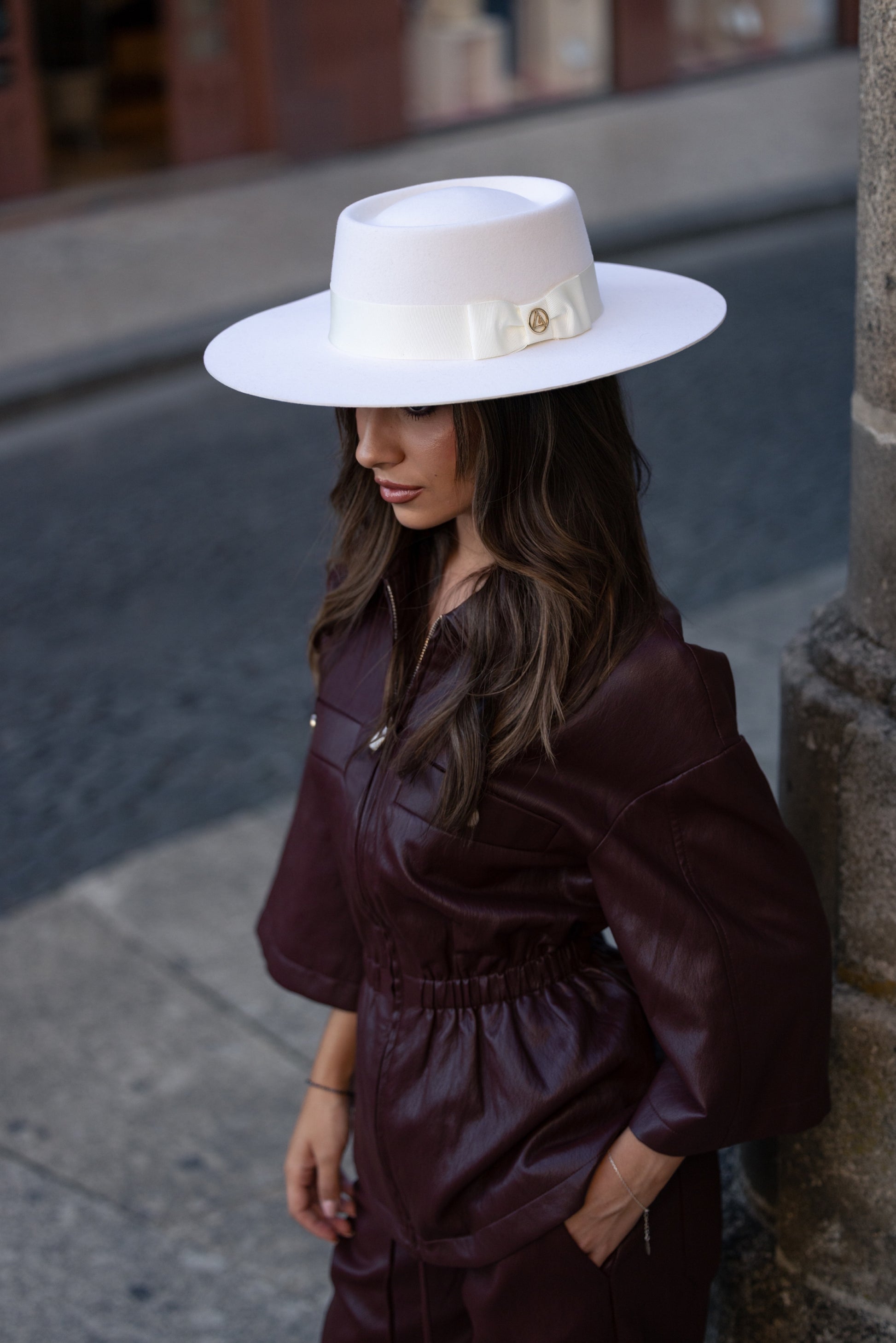 La Rochelle is a Portuguesa-style hat in a delicate off-white tone, handcrafted from a noble blend of beaver fur and high-quality wool felt — a combination that ensures impeccable structure, a soft touch, and superior durability.