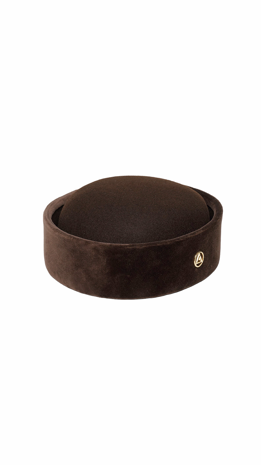 We combined a high-quality wool crown with soft velvet brims, creating a subtle contrast that adds depth, a gentle sheen and a truly distinctive presence. Its smooth cylindrical silhouette sits lightly atop the head, enhancing facial features and elevating any outfit. On the side, the gold Le Trap pin (Zamak, nickel-free) adds the final refined touch.