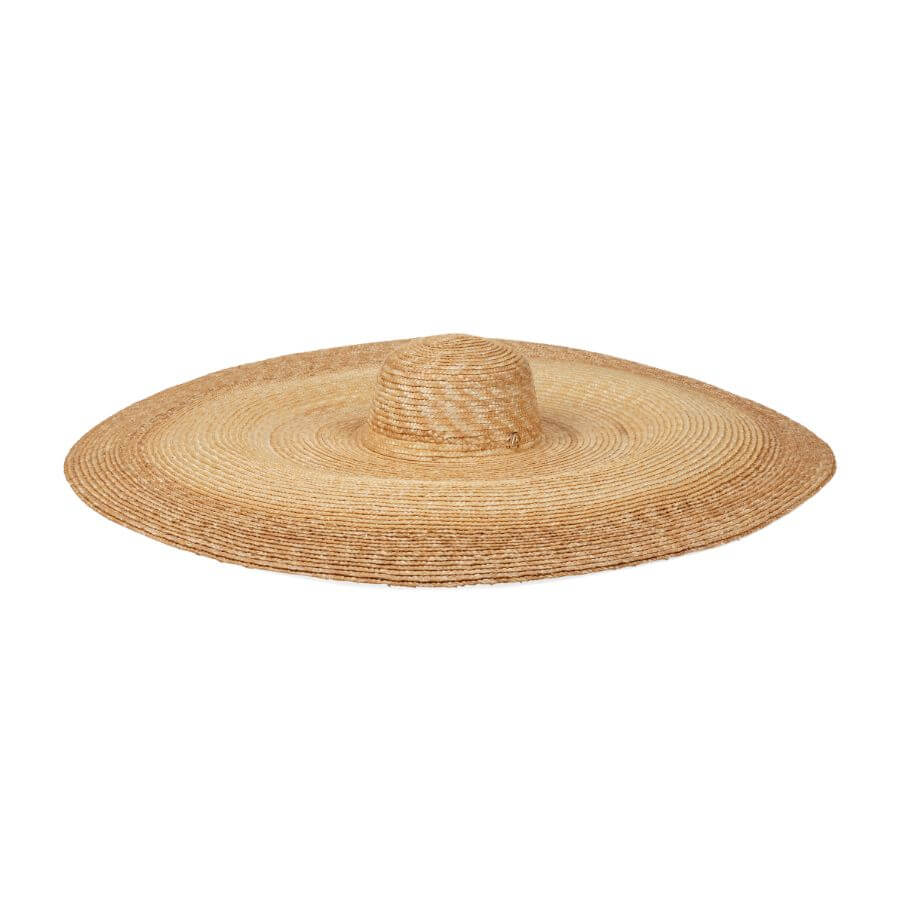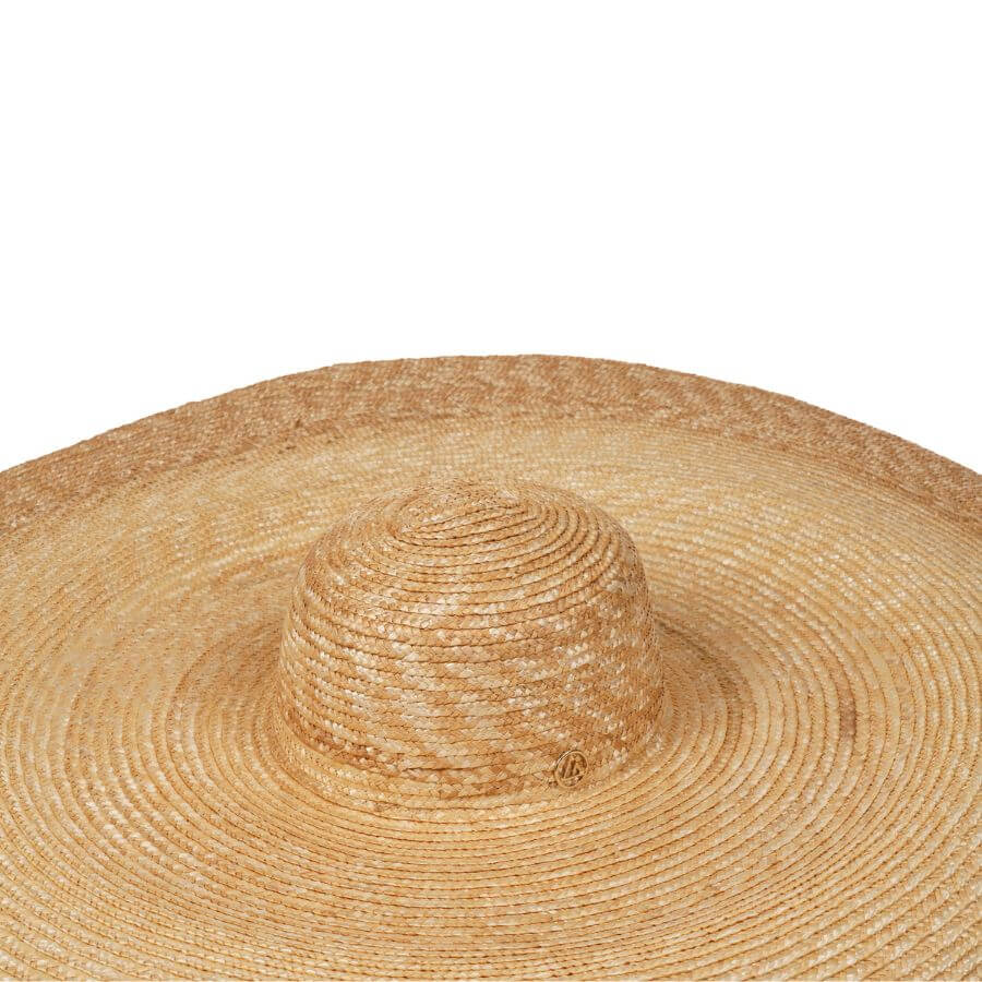 Este maxi chapéu modelo Boater é fabricado à mão com palha de arroz, e destaca-se pela sua aba ampla de 30 cm, costurada manualmente com atenção aos mínimos detalhes — um verdadeiro símbolo de elegância e proteção.