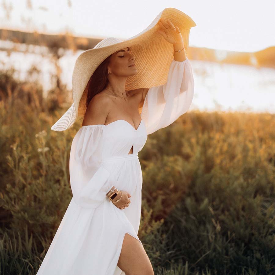 Ideal para a praia, piscina ou viagens de verão, o Maiorca é o chapéu perfeito para proteger o rosto e o cabelo do sol com estilo — e, claro, destacar-se em qualquer paisagem.