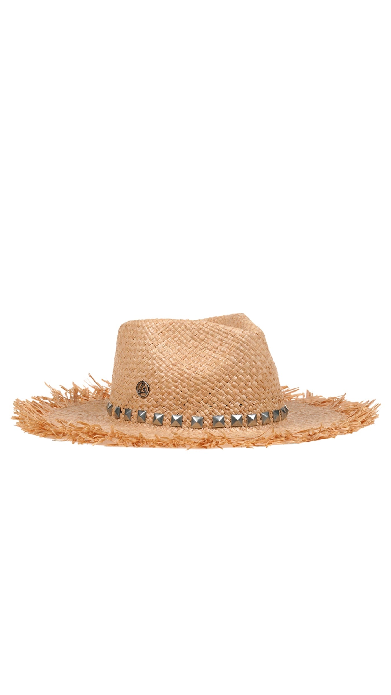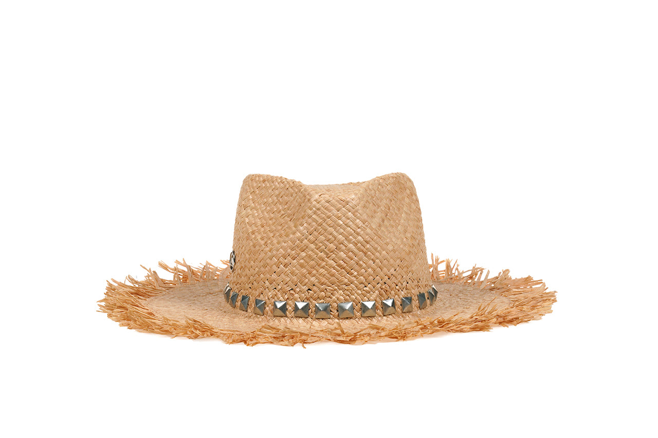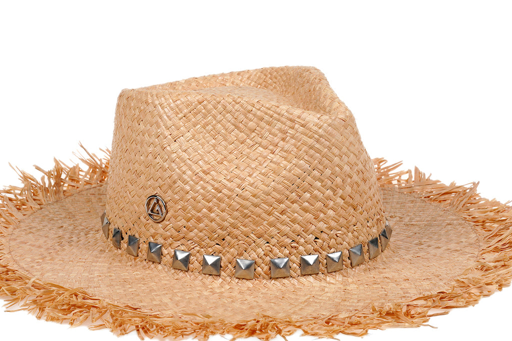 Com aba de 9 cm e pontas desfiadas, transmite um ar despretensioso e moderno — perfeito para quem aprecia peças com personalidade. O destaque vai para as tachas prateadas aplicadas manualmente ao redor da copa, criando um visual urbano com um toque artesanal e exclusivo.