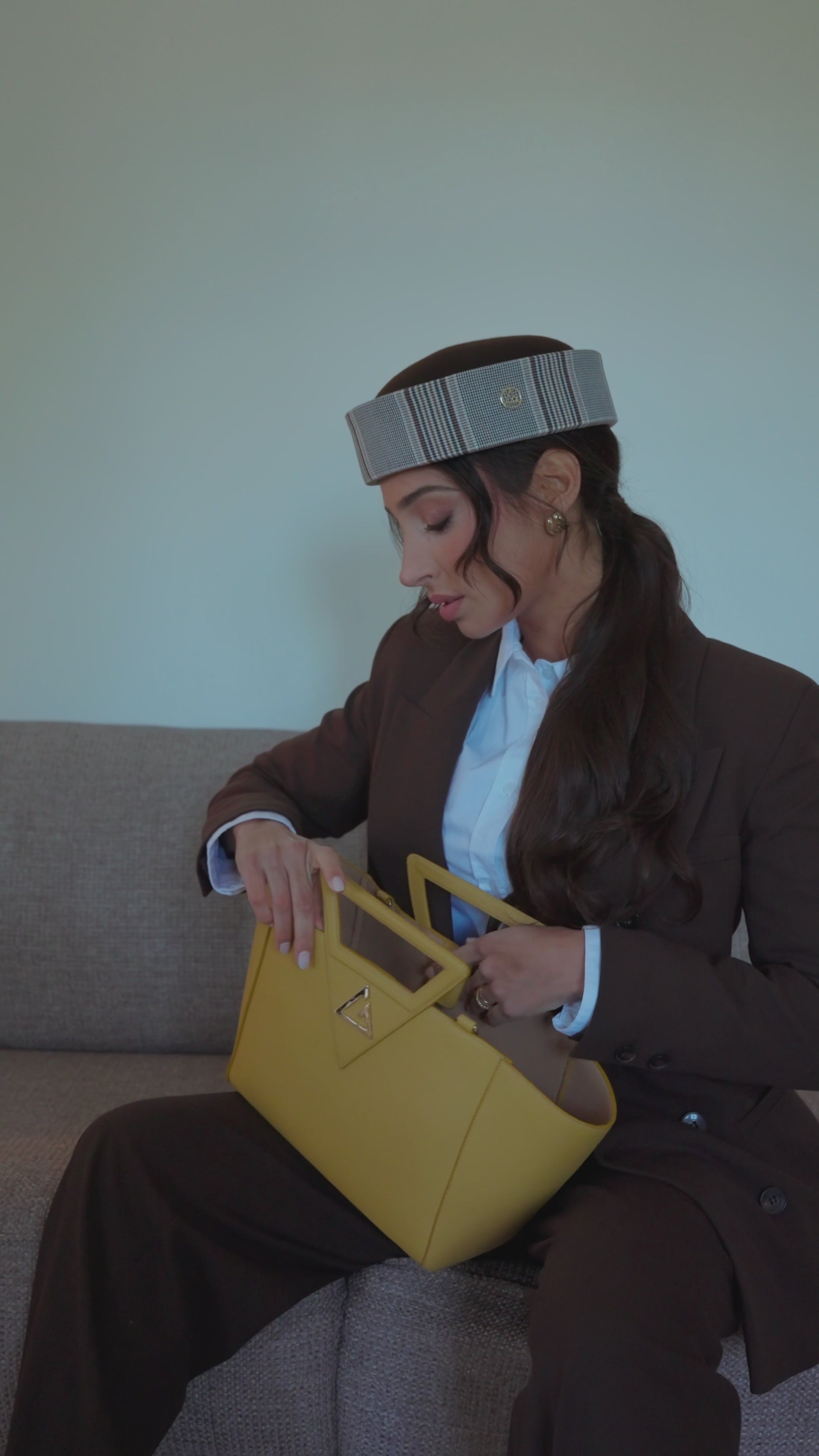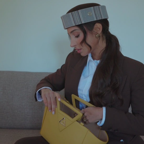 O contraste entre a lã quente e o tartan festivo cria uma peça sofisticada, cheia de personalidade e ideal para a época mais encantadora do ano. A silhueta cilíndrica típica do pillbox assenta com leveza no topo da cabeça, valorizando o rosto e acrescentando um toque cinematográfico aos looks de dezembro. Na lateral, o pin dourado Le Trap (Zamak, níquel-free) reafirma o detalhe luxuoso da marca.